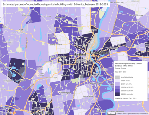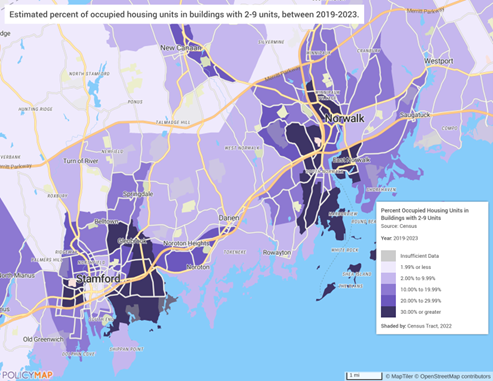 Figure 2 A middle housing density map of Stamford/Norwalk metro area